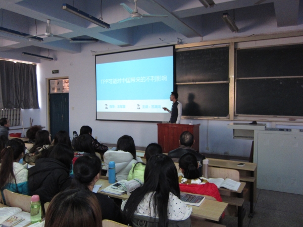 12月18日上午,经济与贸易学院在1号楼第1阶梯教室举办了“开放中的中国经济——《国际经济学》翻转课堂教学模式改革成果展”,参加此次成果展的有2013、2014级国际经济与贸易专业本科生以及经贸学院领导与部分专业教师。报告围绕“FDI与中国”“TPP可能对中国带来的不利影响”“人民币汇率制度改革回顾”和“2016年人民币汇率预测分析”等四个主题展开。报告由学生作为主讲人,围绕当前中国经济热点,利用专业知识进行了深入研究分析,并分别有专业教师进行逐一点评。